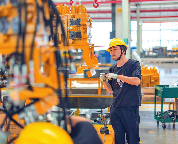 正在位于两江 新区的一家机械制制企 业,工做人员正在总卸车 间拆卸即将出口老挝、 缅甸的挖掘机(2025 年 4 月 21 日摄) 黄伟摄 / 本刊