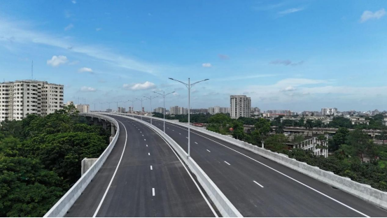 正在孟加拉国,由集团投资扶植运营的达卡机场高架快速项目(一期)已通车近两年。从空中俯瞰,这条高速从首都达卡阿贾拉勒沙迦国际机场,纵穿达卡市区,达到南部的贾特拉巴立,毗连达卡吉大港公,是孟加拉国最主要的公和贸易生命线之一。