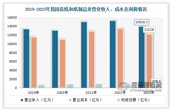 虽然2023年因为市场需求削弱、原材料成本上升,以及外部变化等问题叠加,使得制纸行业全体出产和运转坚苦增加。但跟着财产对高质量成长和低碳绿色纸业的认识不竭提拔,通过加强立异能力,添加新动能,合理无效节制新减产能,制纸财产总体仍然连结不变成长态势。数据显示,2023年全国制纸和纸成品业停业收入13926。2亿元,同比下降2。4%;停业成本12228亿元,同比下降3。1%;利润总额508。4亿元,同比增加4。4%。