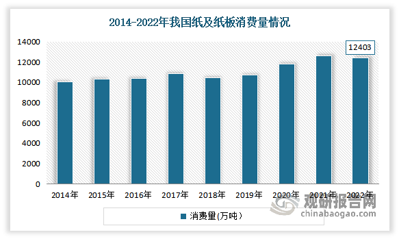 制纸工业是国度支柱财产之一,是主要的根本原材料财产,财产链中的纸浆、纸张和纸成品不成是文化载体、糊口必需品取包拆材料,仍是科技、国防、工农等各个范畴必需的根本材料,其财产涉及农、林、化工、机械、电子、生物、能源、运输等范畴。自2018 年以来,我国纸及纸板消费量及增速均呈逐年递增趋向。到2021 年我国纸及纸板消费再立异高,全年消费 12,648 万吨,达到汗青峰值,同比增加 6。94%。但进入2022年,市场需求有所收缩,消费量小幅下降。2022年我国纸及纸板消费量12403万吨,较上年下降1。94%,人均年消费量为87。84千克(14。12亿人)。