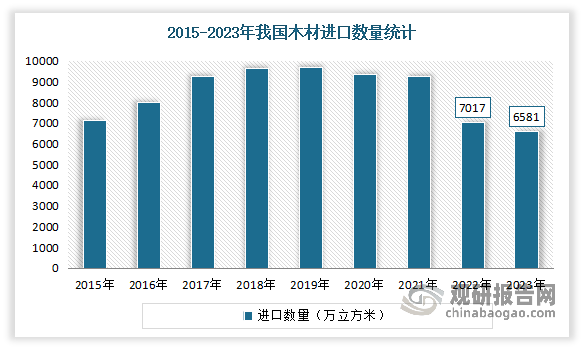 2022年以来受俄乌场面地步的影响,全球木材供应大国俄罗斯的木材出口量大量削减。数据显示,2022年中国木材进口量大量下滑,为7017万立方米,同比削减24。07%。2023年我国进口木材累计达6581万立方米,取2022年比拟削减6。08%。