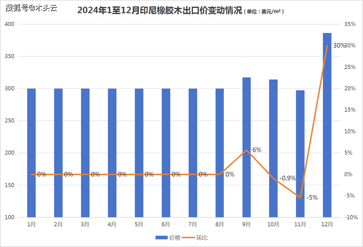 前8个月,9月出口价略微上调6%至317美元/立方,此中11月成为全年最大程度。猜测遭到泰国暴雨影响橡胶木原料供应,以及全球橡胶价钱大涨,12月马来西亚橡胶木出口价达到全年最高程度,环比11月上涨了30%。